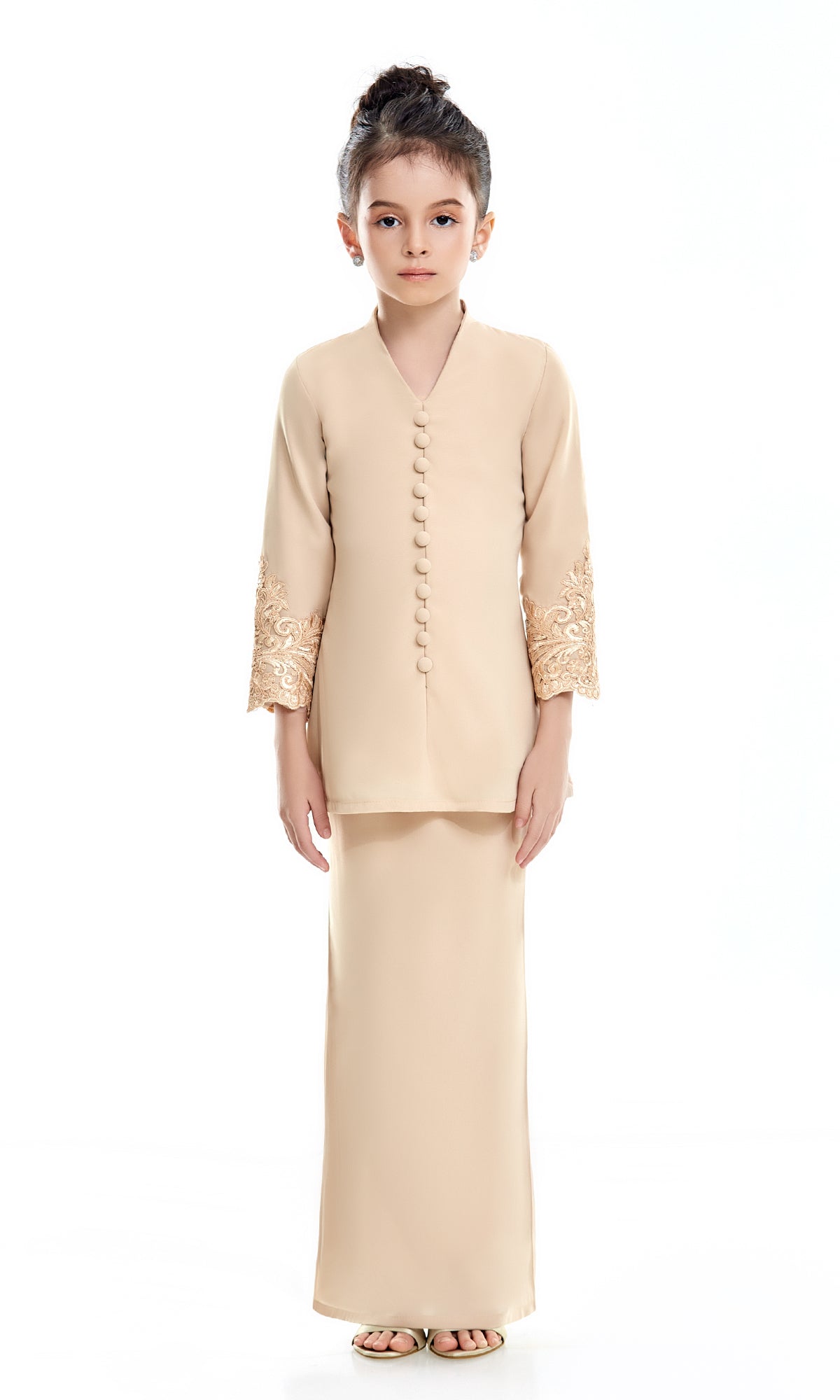 - Lace embellishment details on kurung and sleeve