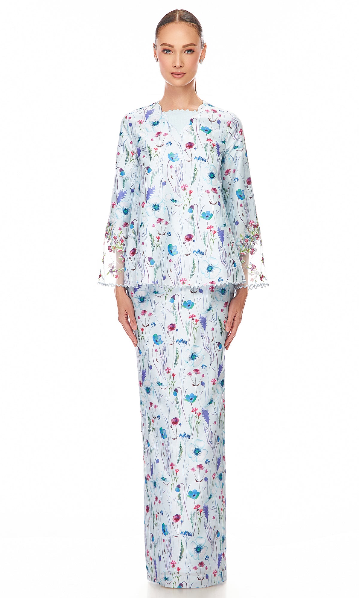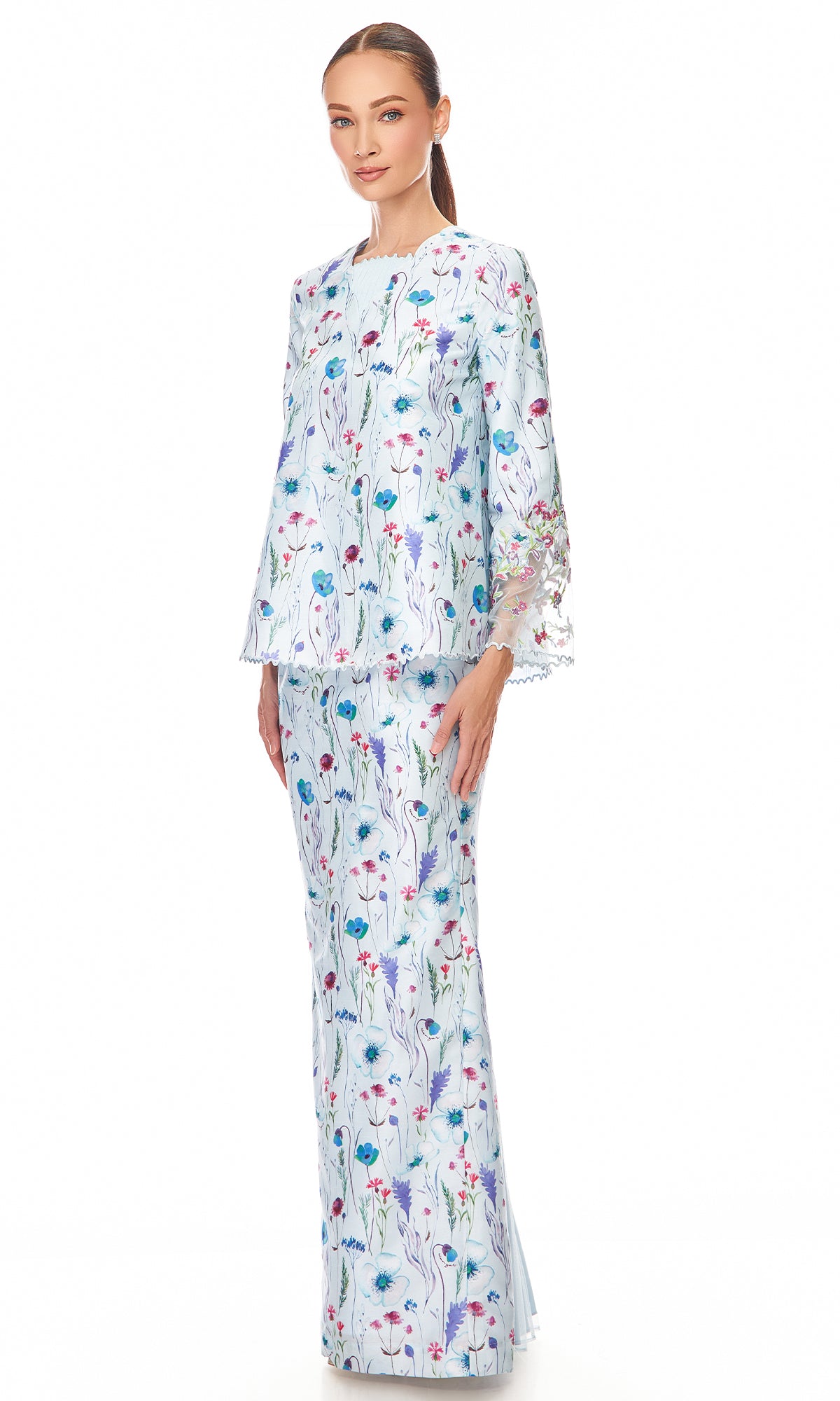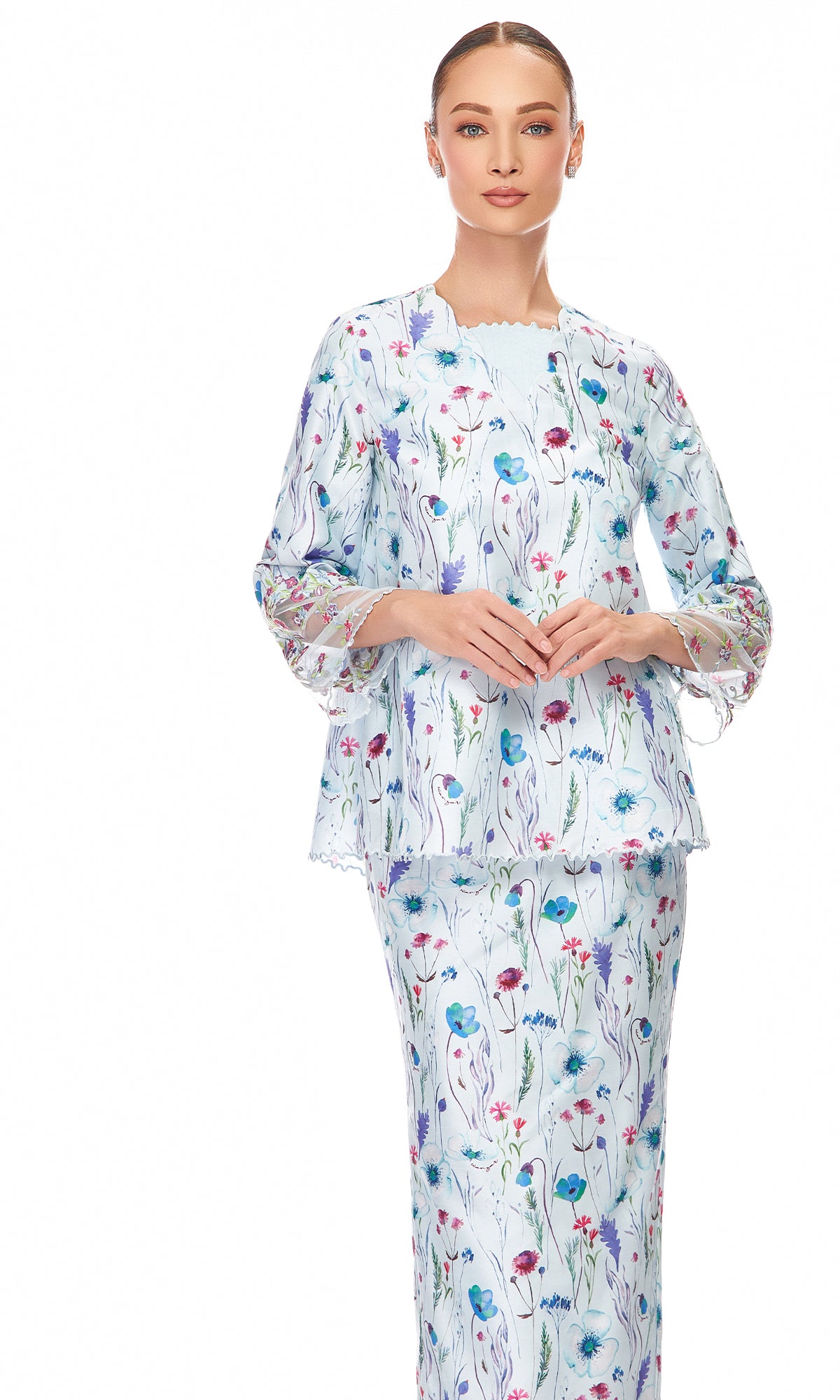 -Sulam biku and patch lace at the bottom ofthe kurung and sleeves with floral embroidery