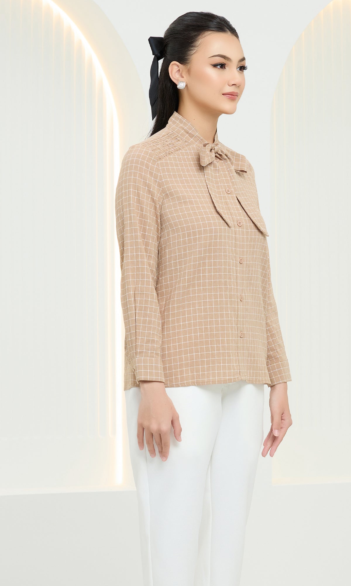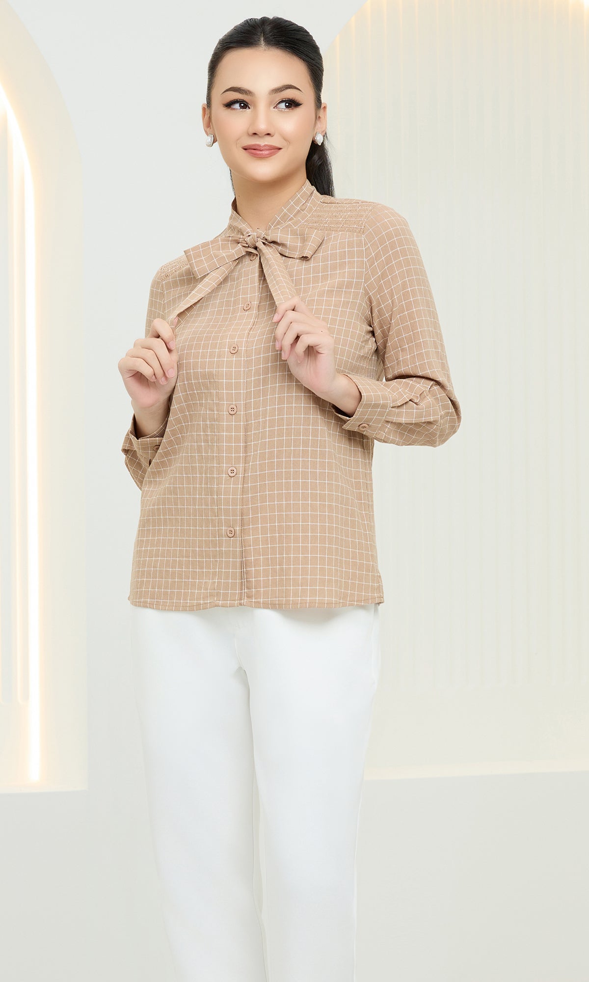 ISLA CHECKED TOP IN ECRU BROWN