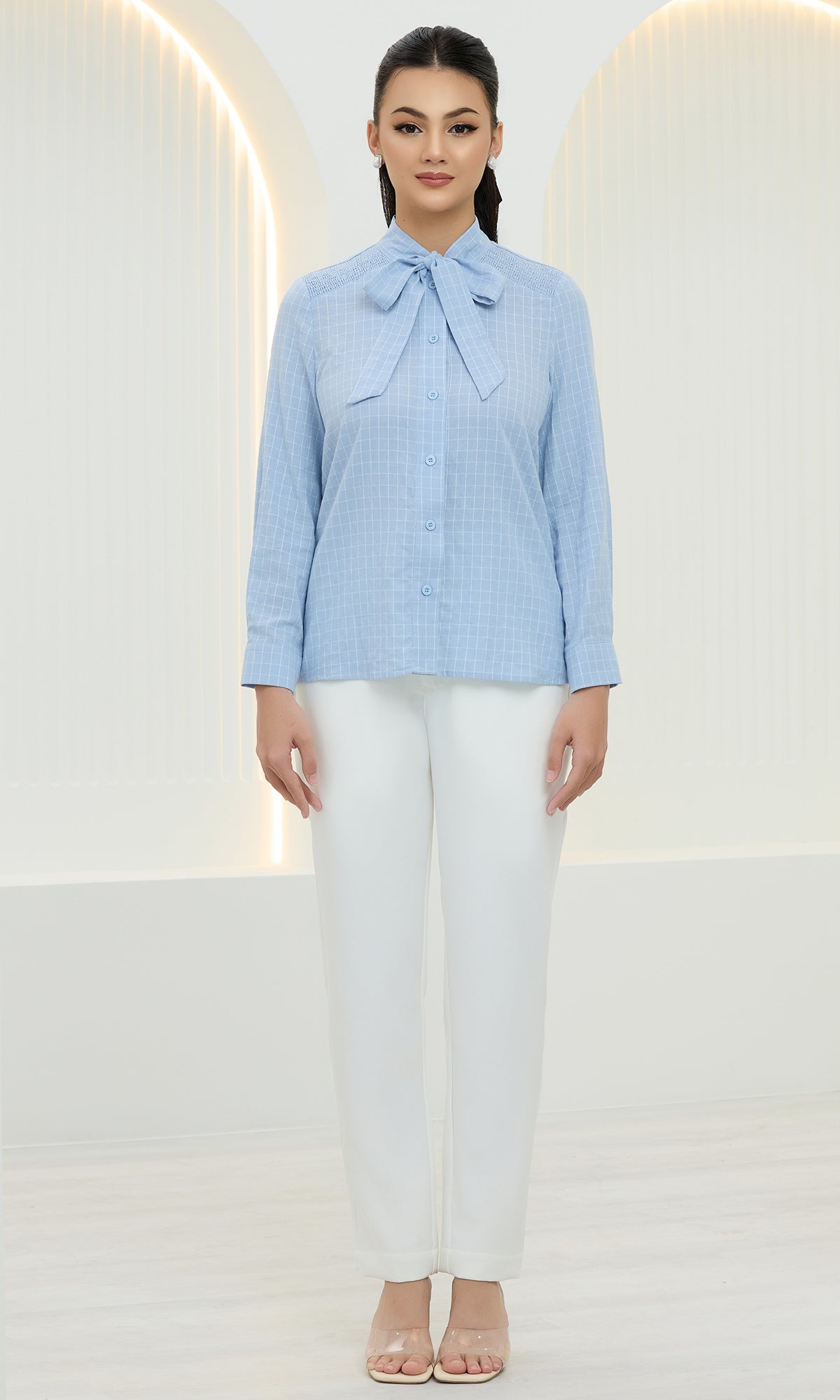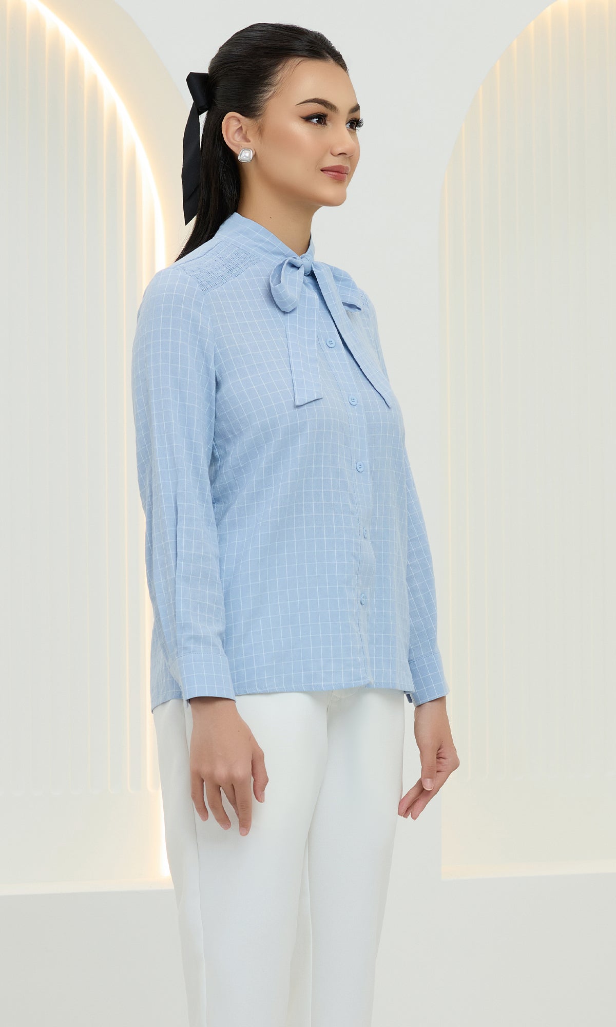 Isla Checked Top in Uranian Blue