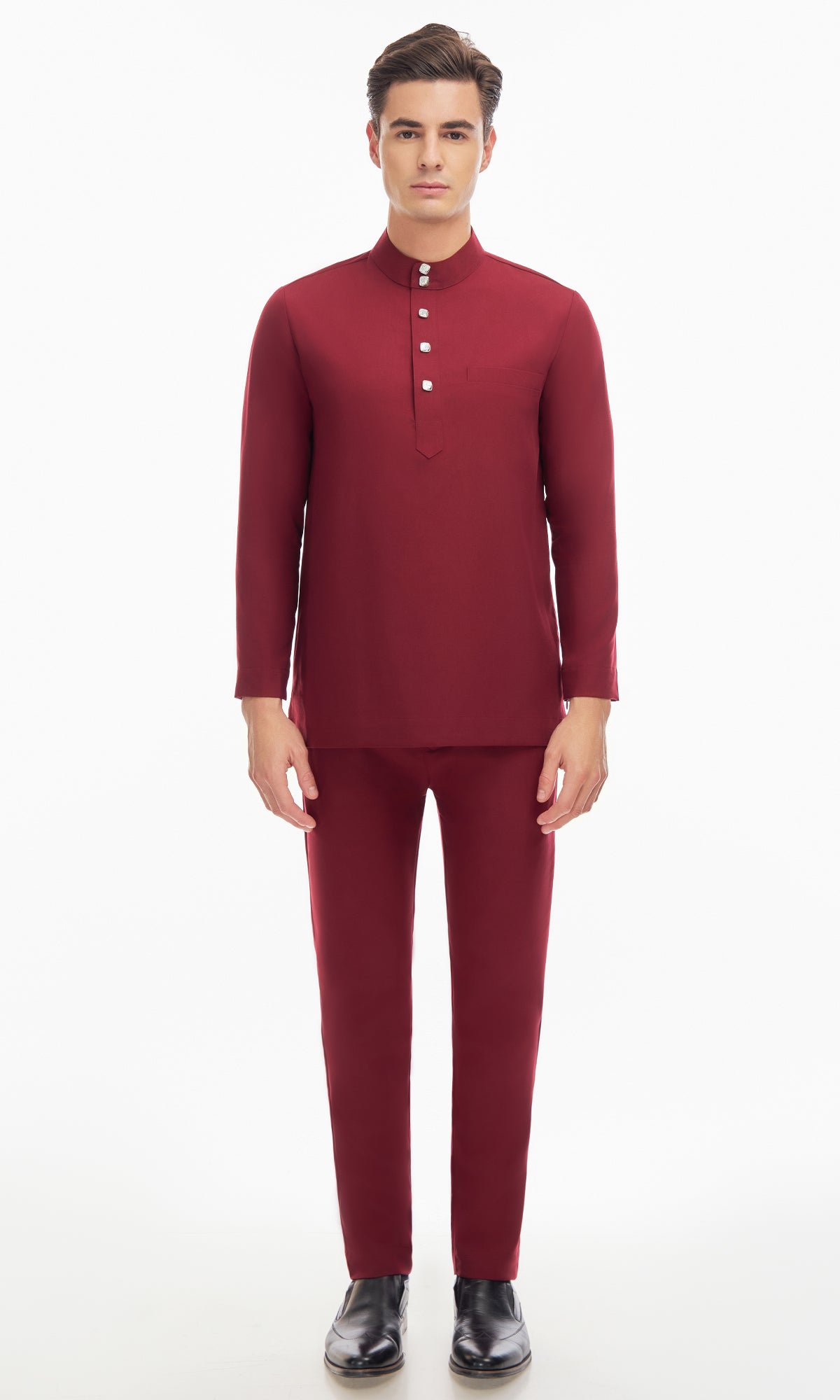 -Modern Cut Baju Melayu Cekak Musang with Side Zipper