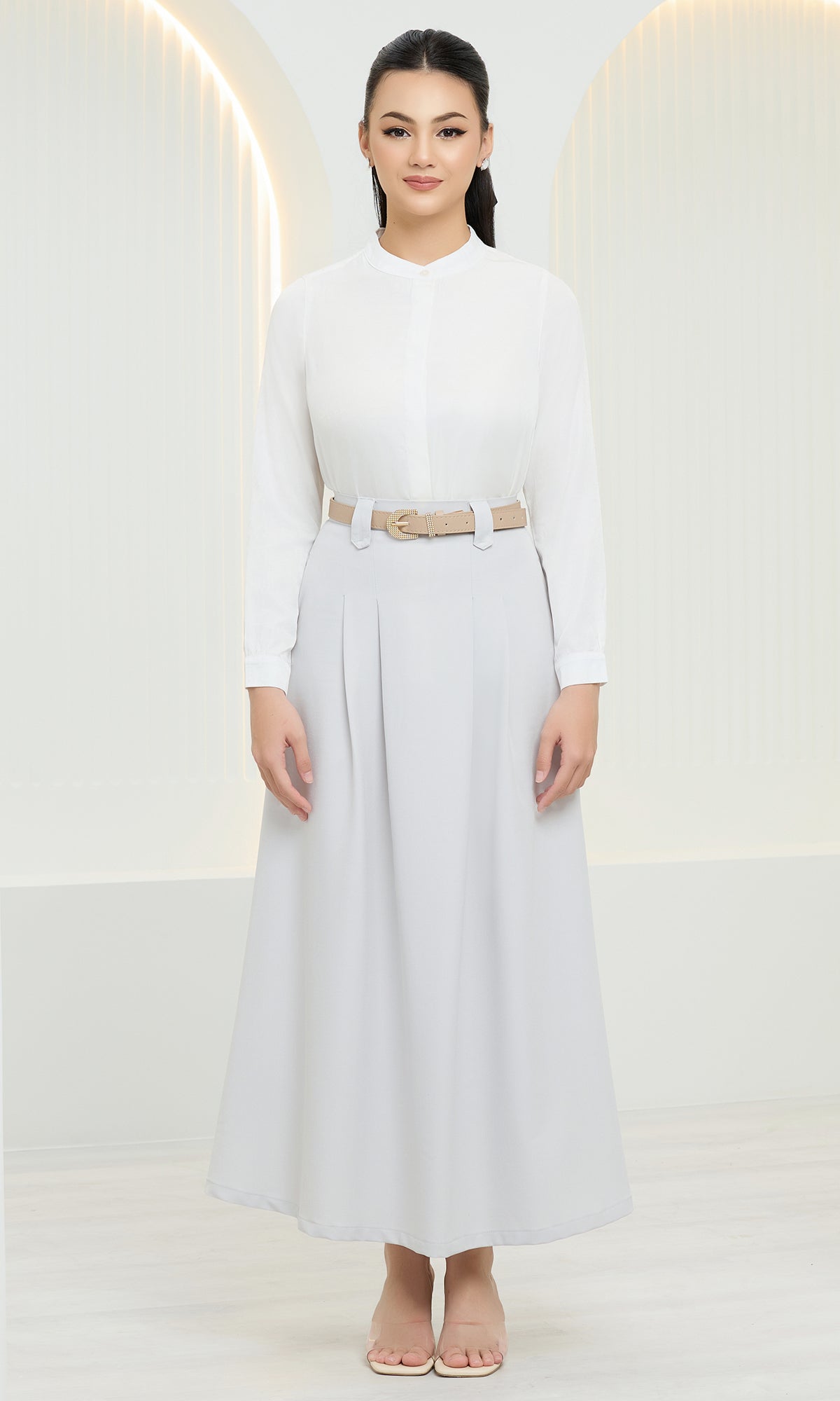 - Half Elastic Waist with Invisible Zip