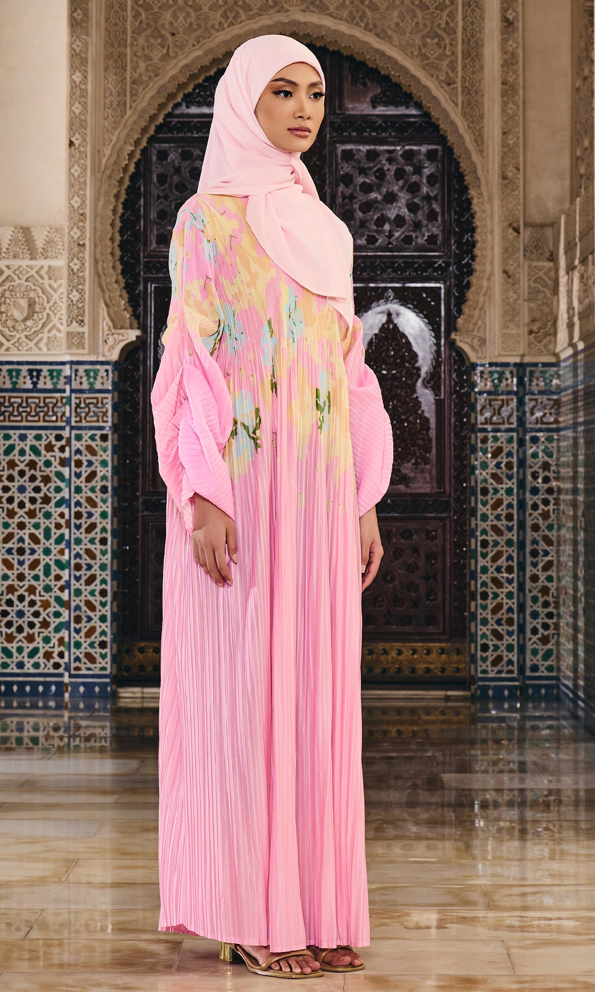 - Material: Printed pleated fabric
