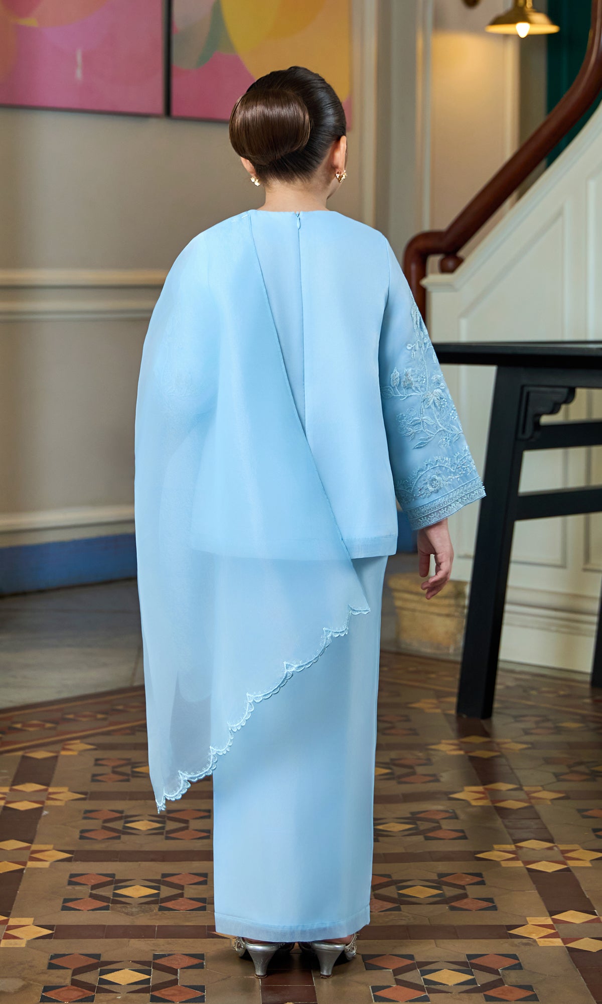 - Embroidery details with hand beaded embellishment on kurung and sleeve