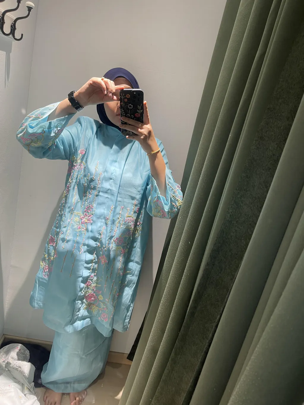 - Cut: Long, loose-fitting kurung Pahang with straight silhoutte