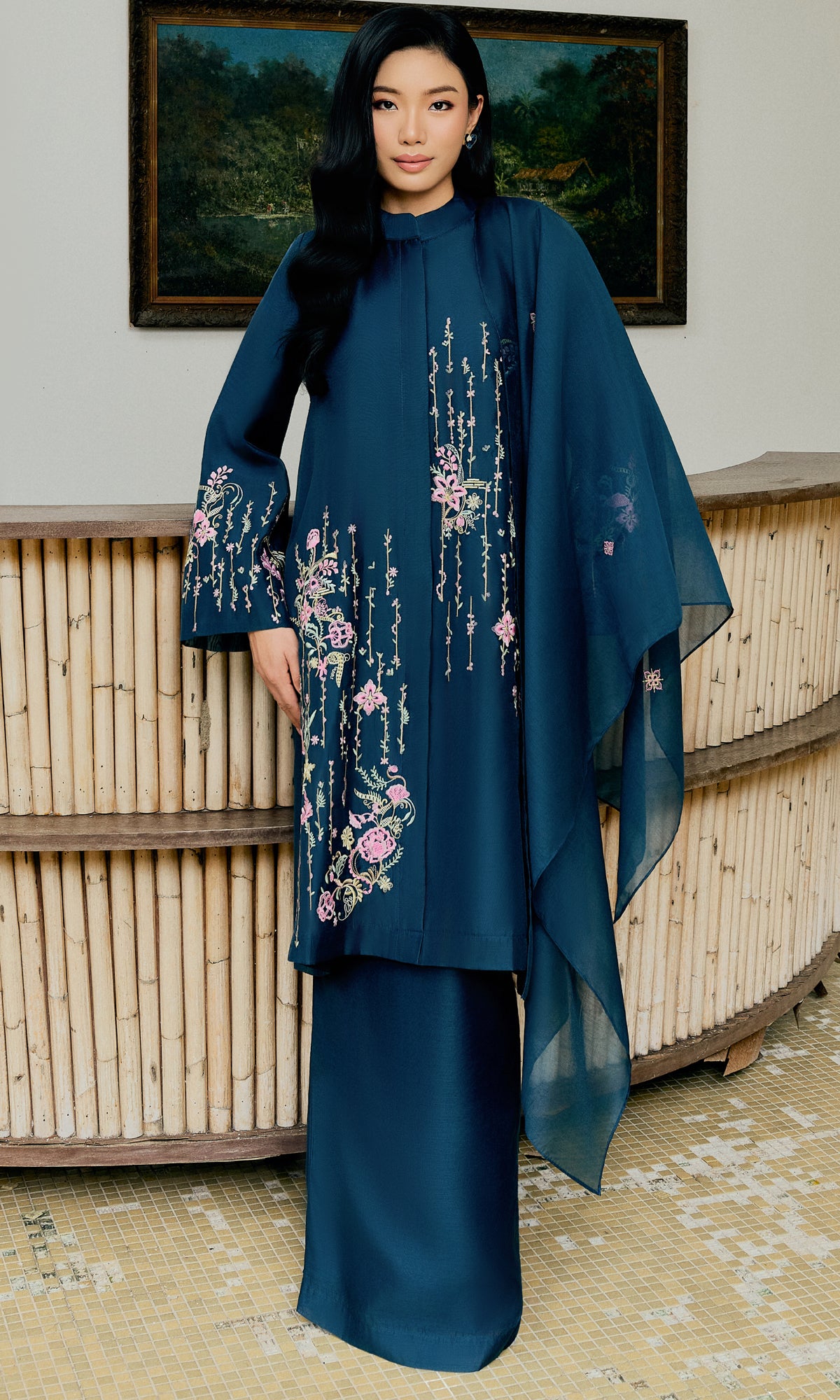 - Cut: Long, loose-fitting kurung Pahang with straight silhoutte