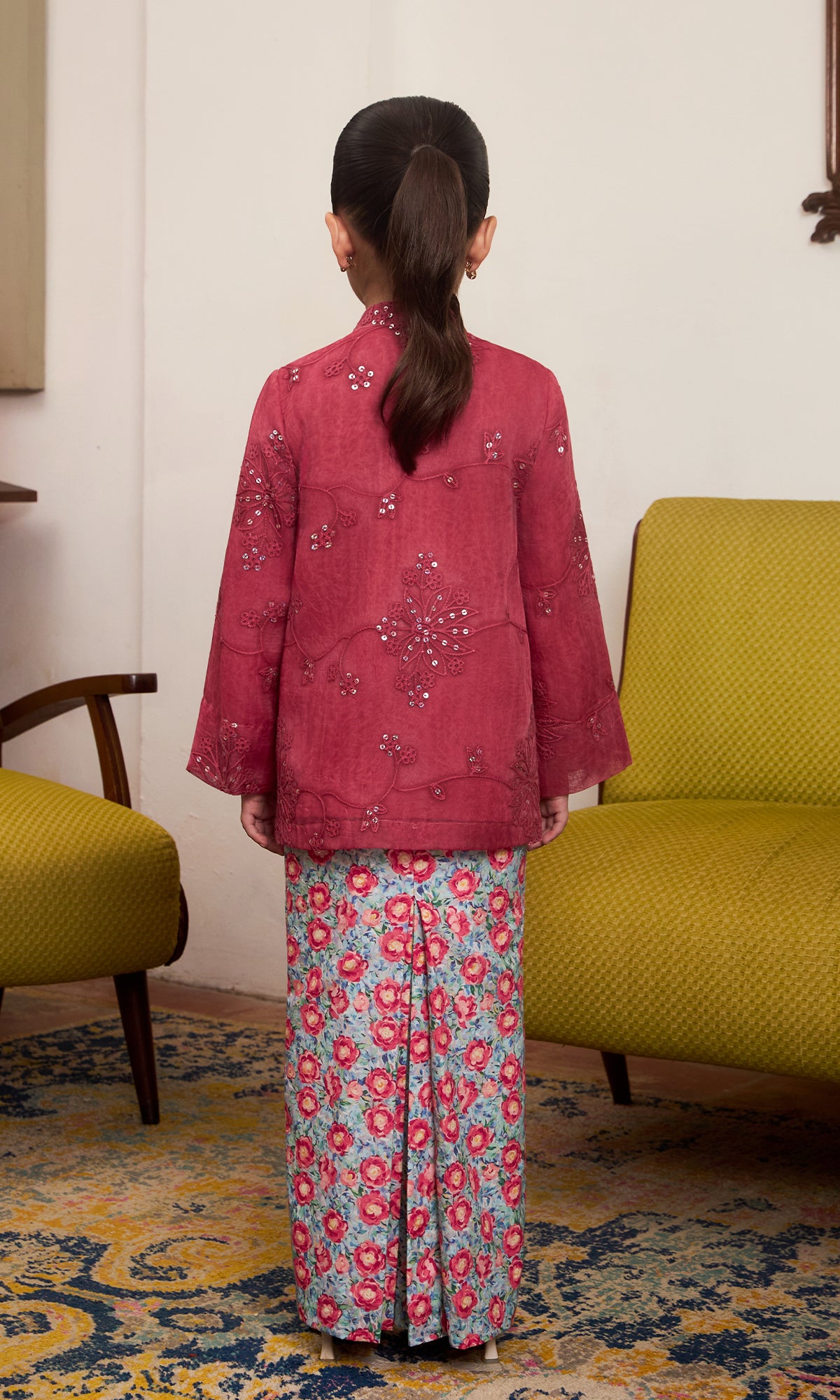 - Lace and sequin details on the kurung top