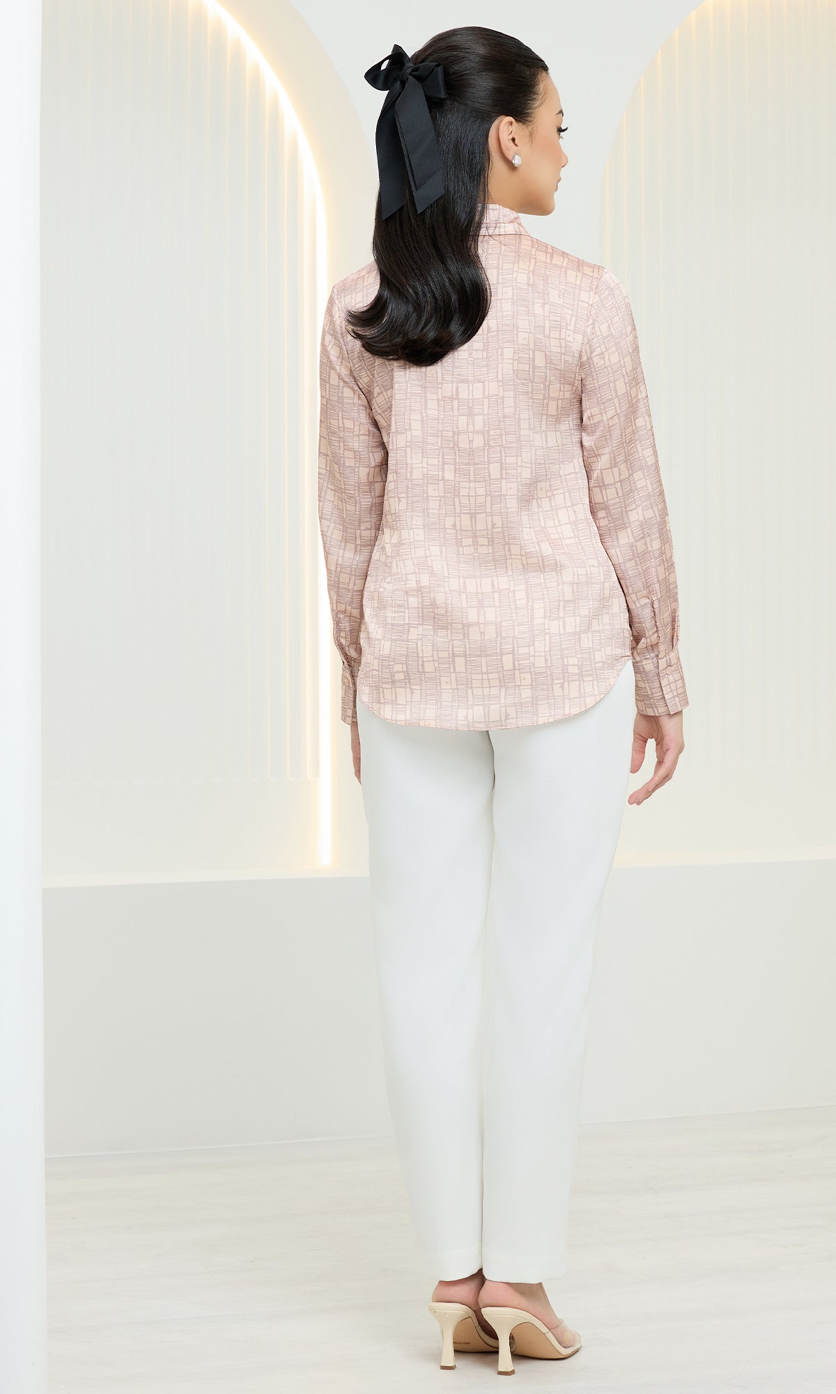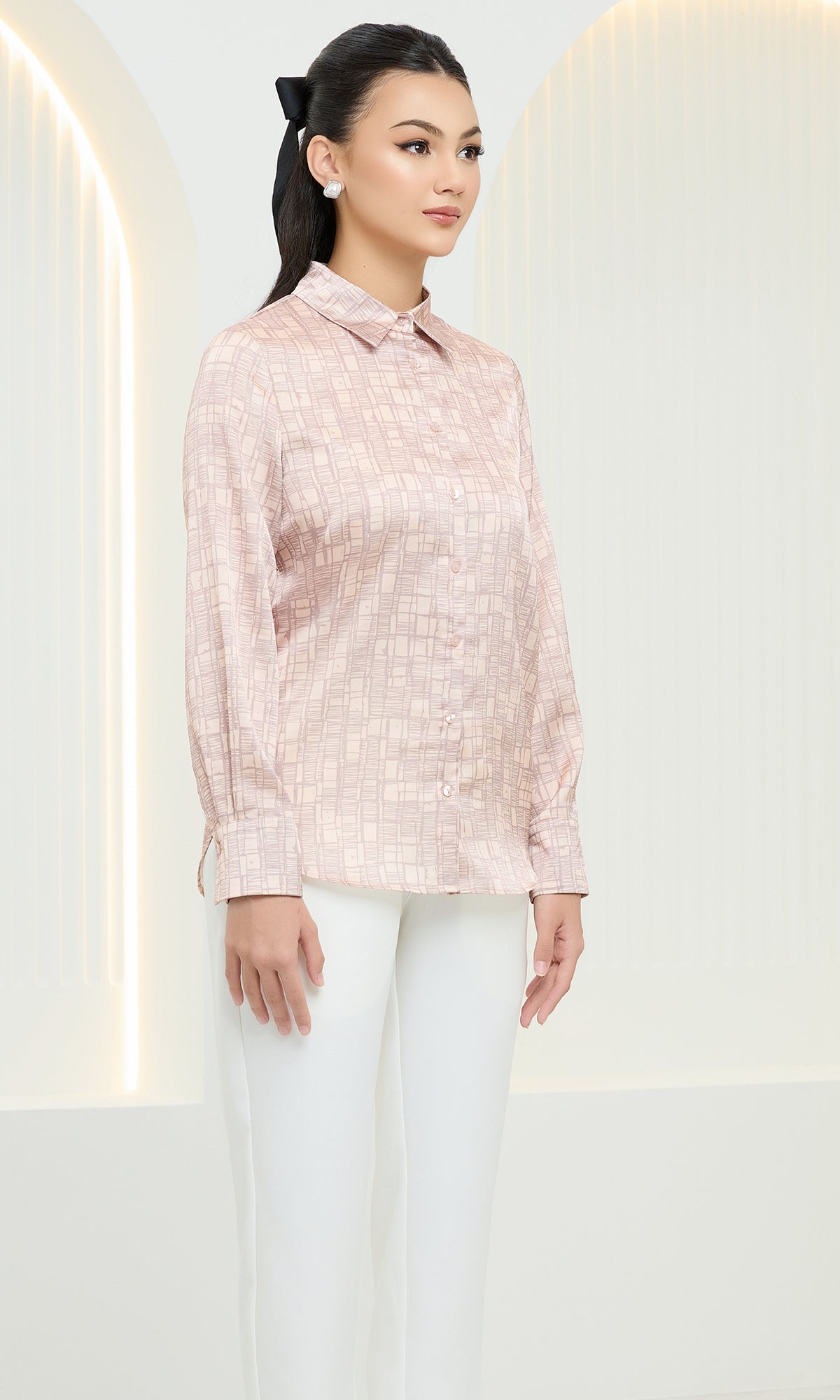 - Shirt in Satin Fabric with Italian Collar and Button Down at the front