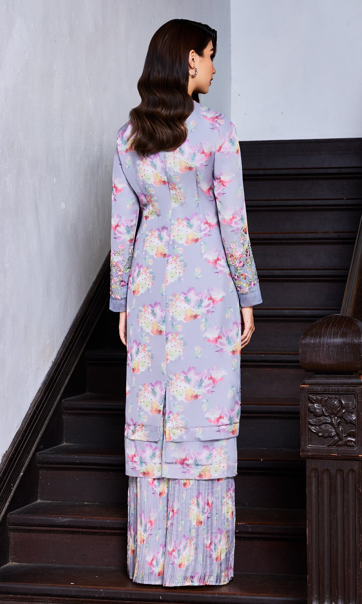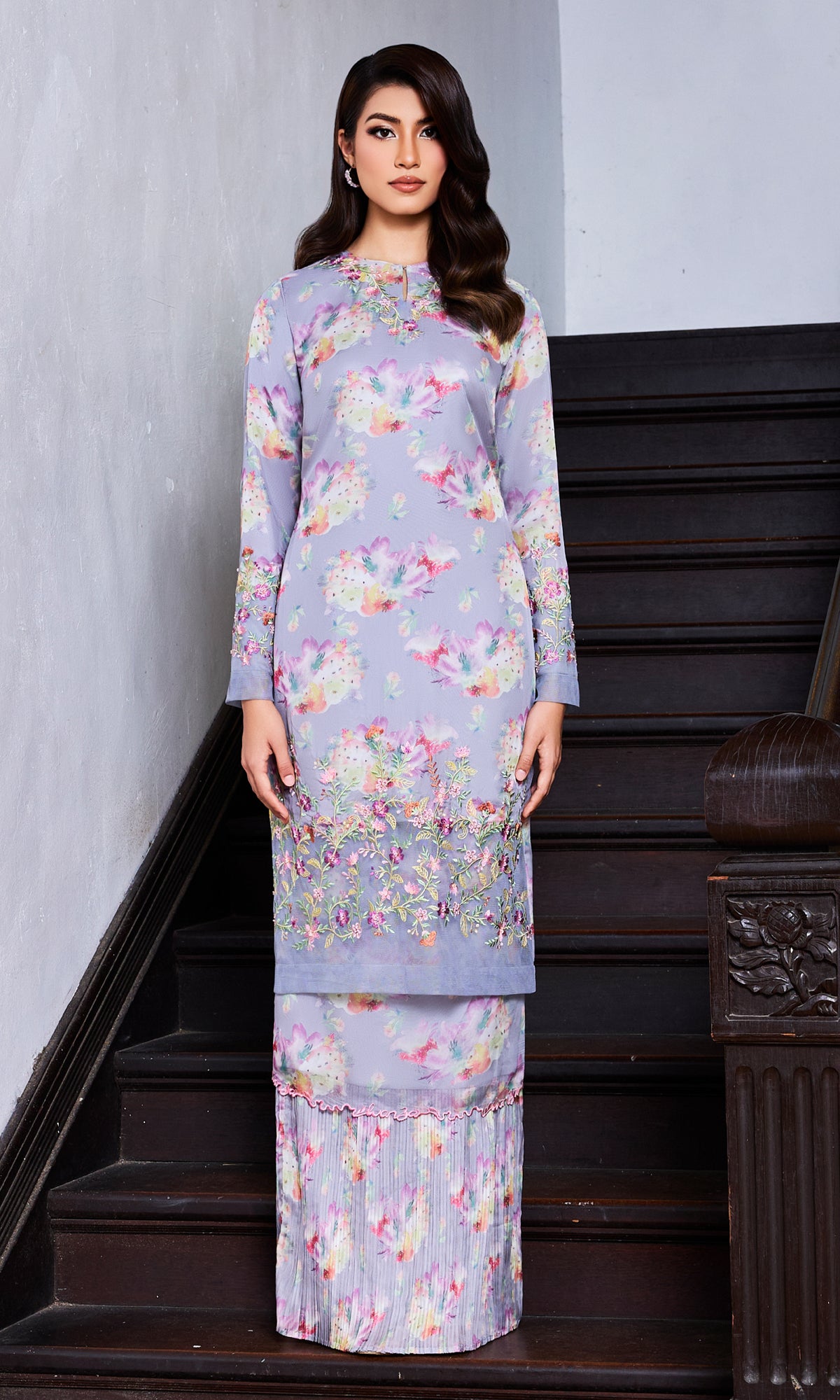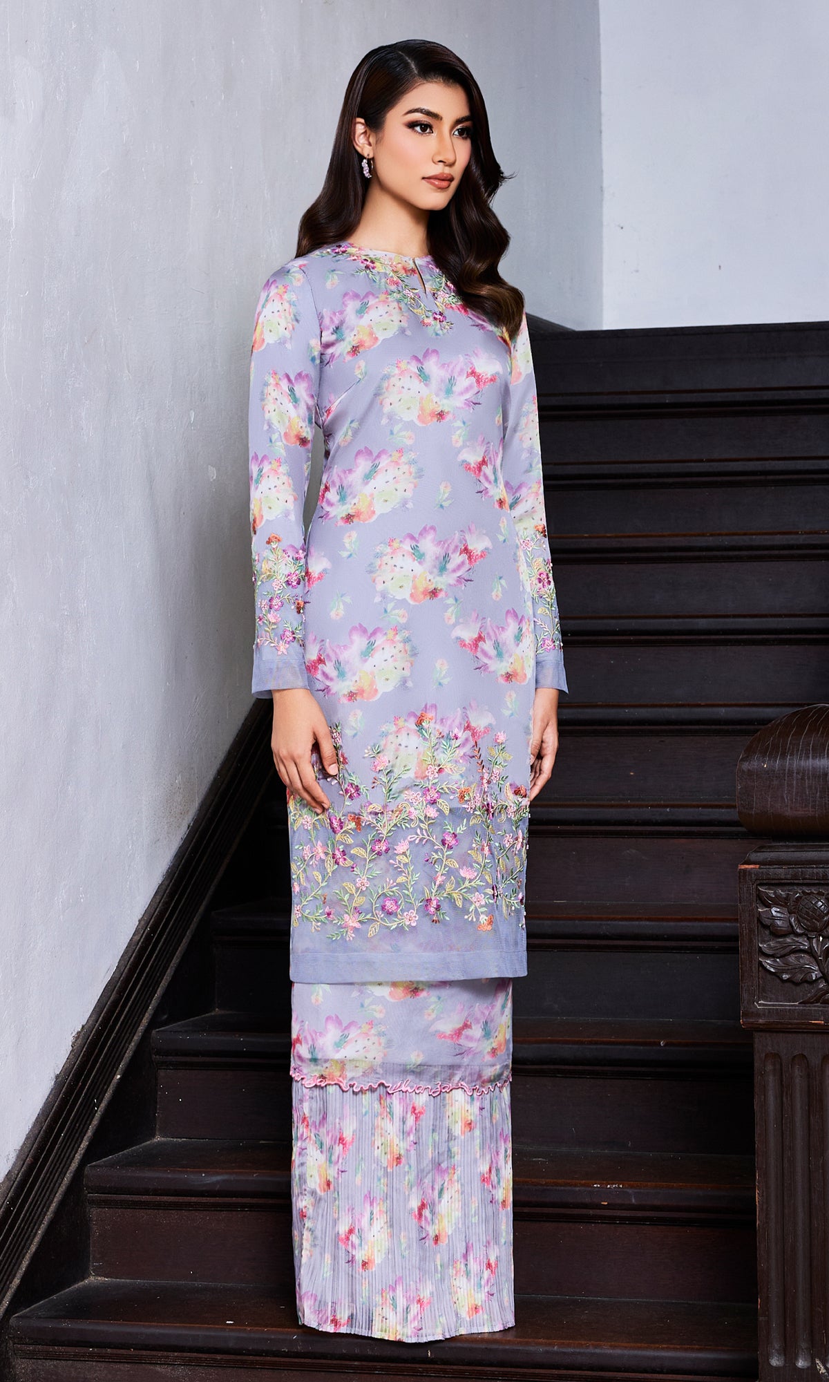 - Beading and embroidered details at the bottom of the kurung and sleeve