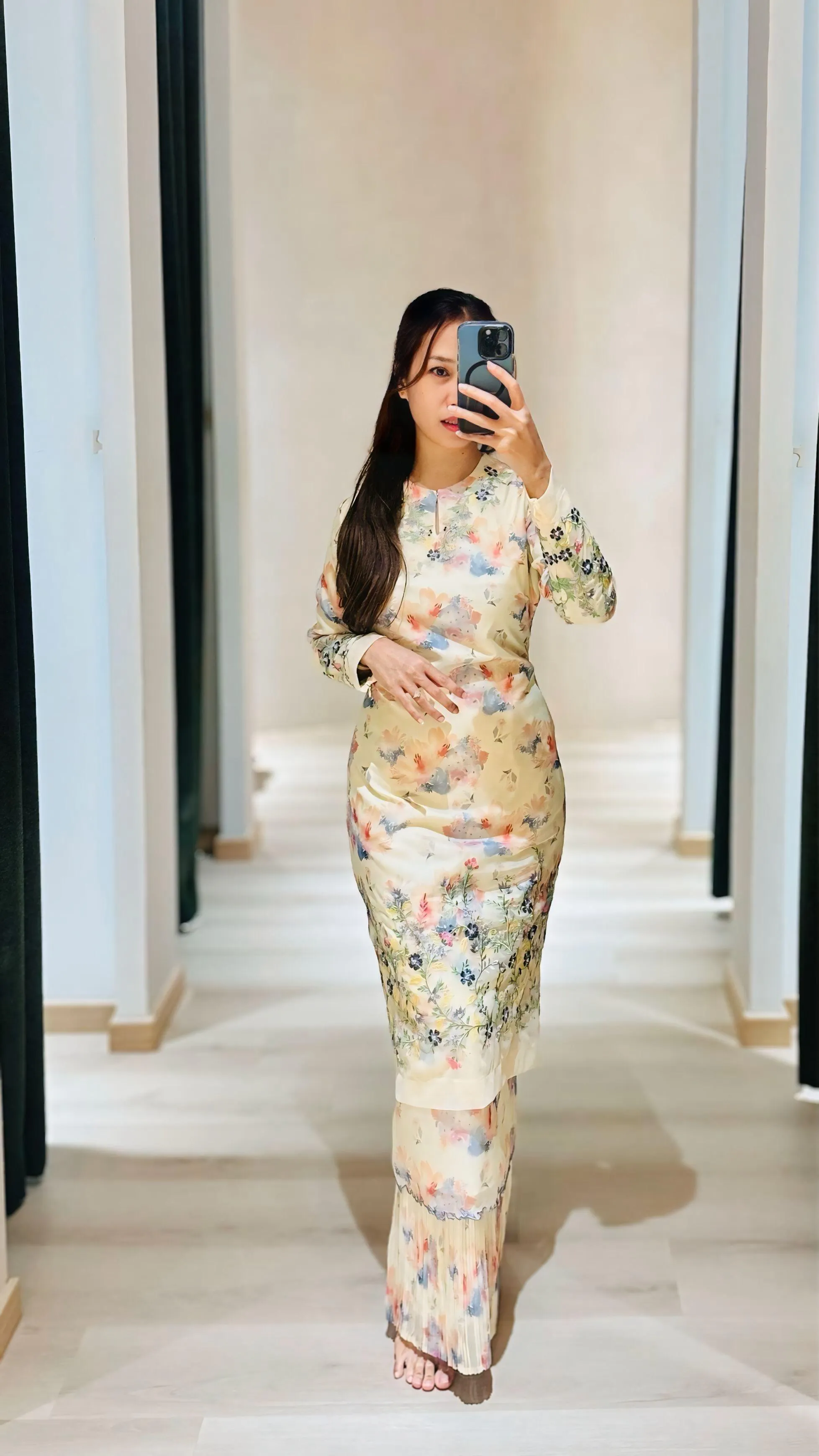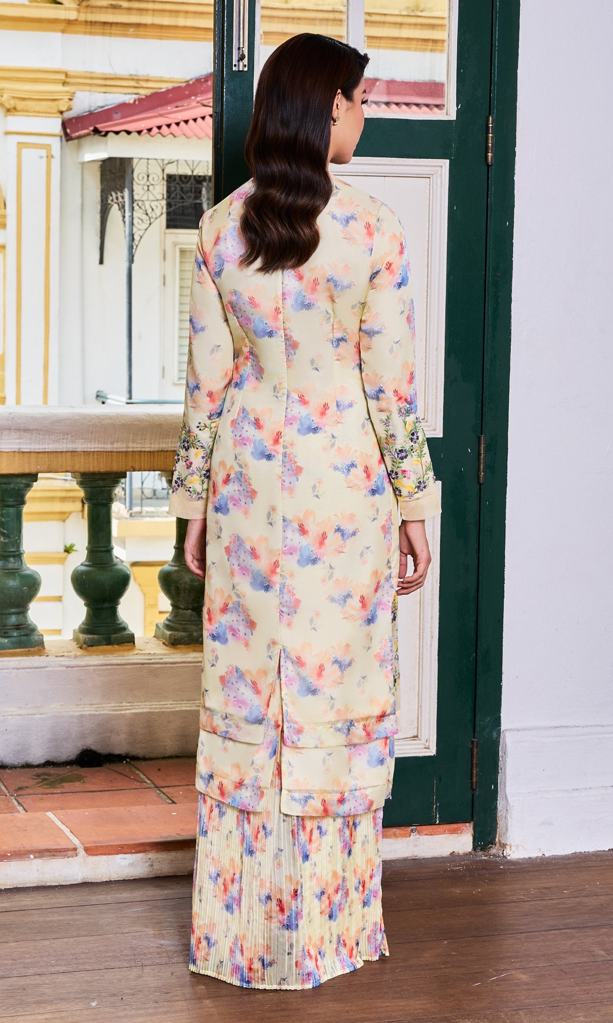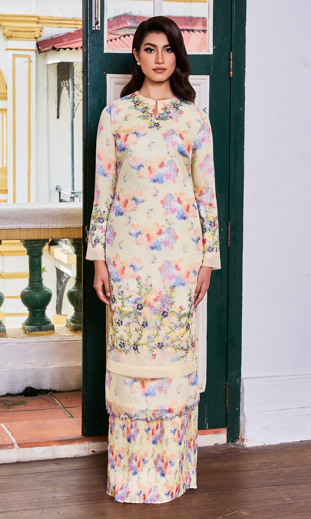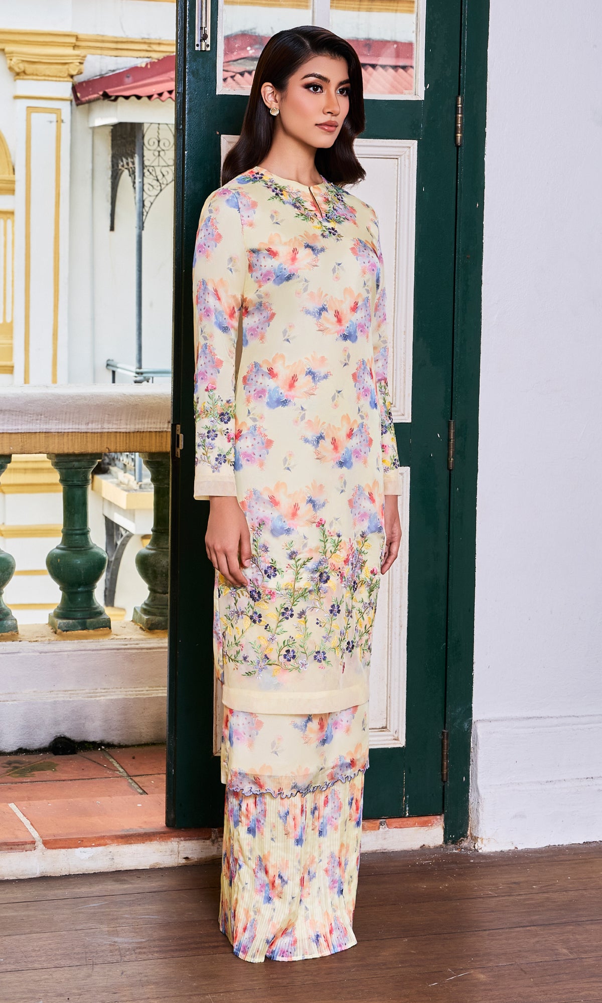 - Beading and embroidered details at the bottom of the kurung and sleeve