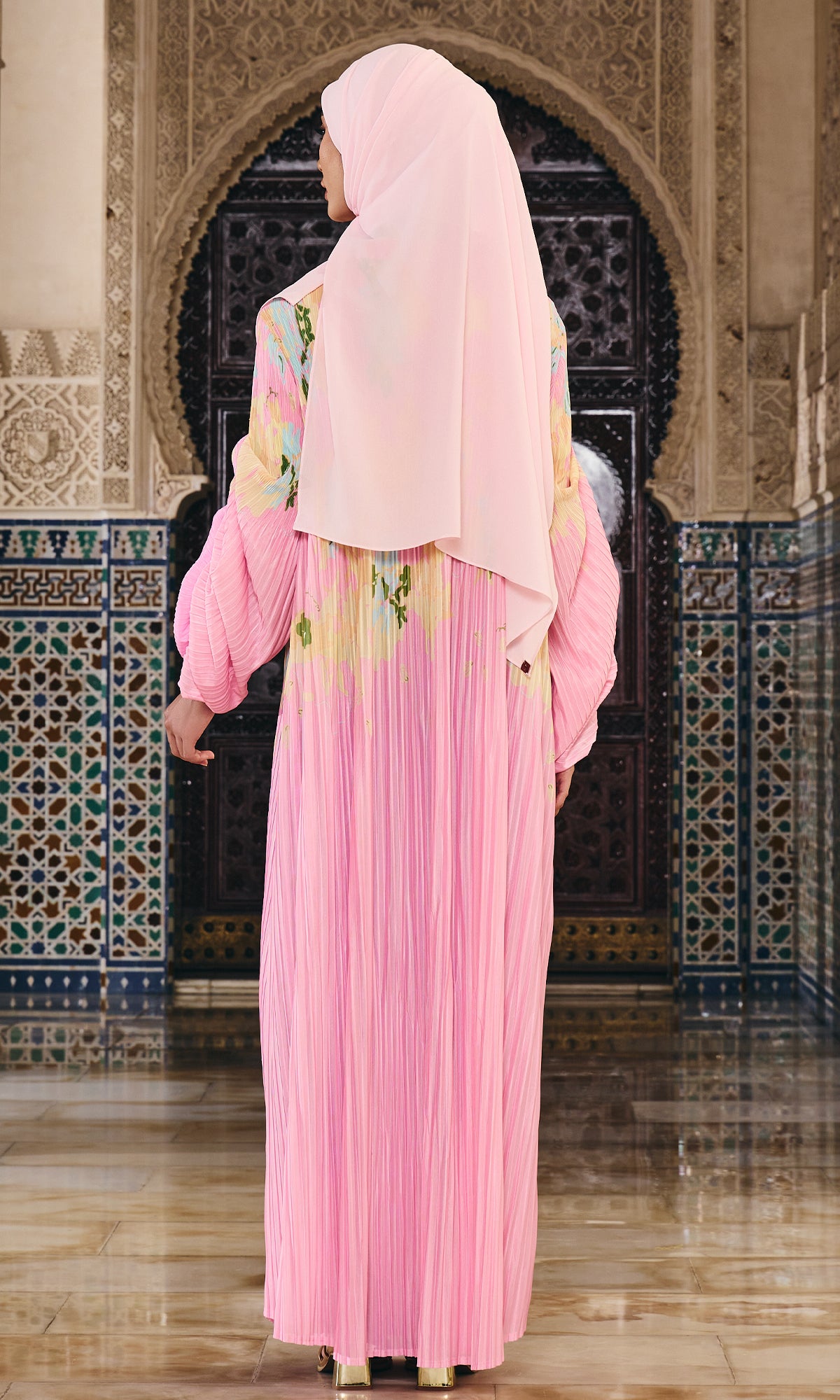 - Elegant pleated design with all-over printed pattern