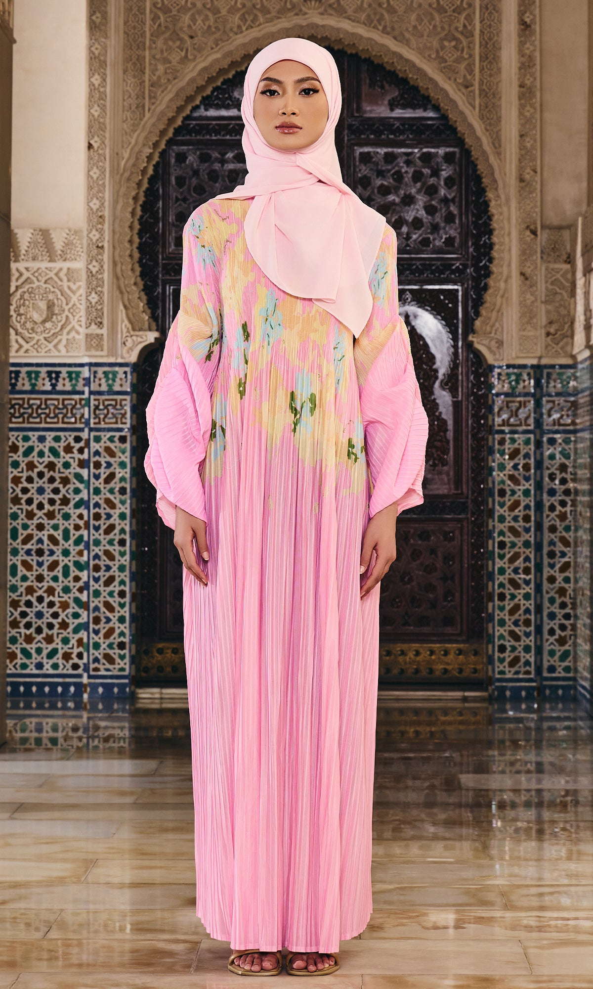 - Material: Printed pleated fabric