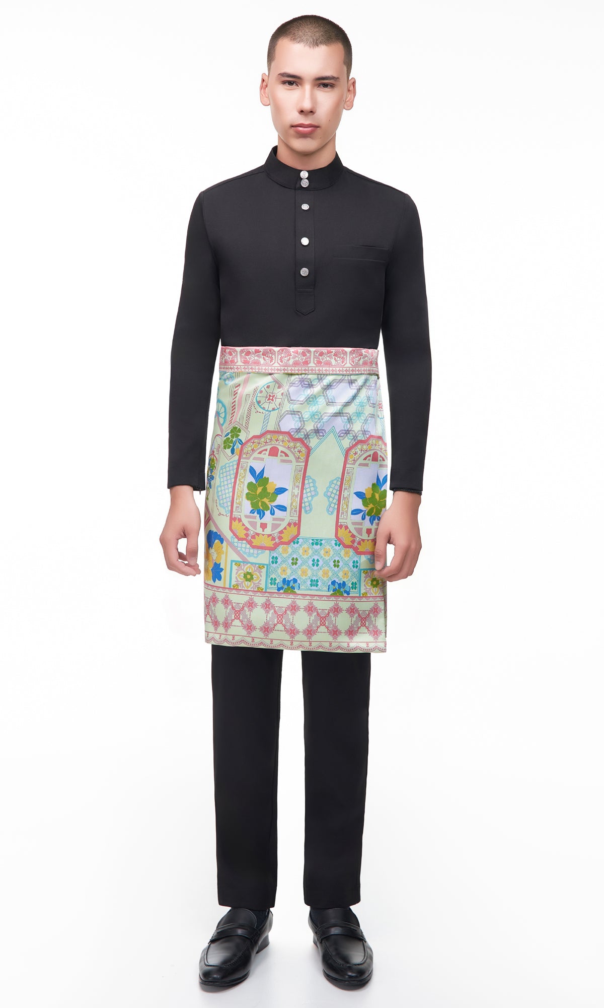 - Material: Shantung with Modern Geometrical Motif Prints