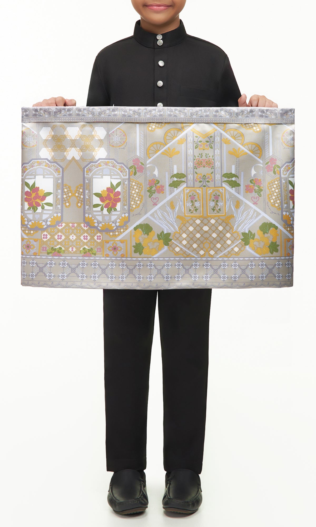 - Material: Shantung with Modern Geometrical Motif Prints