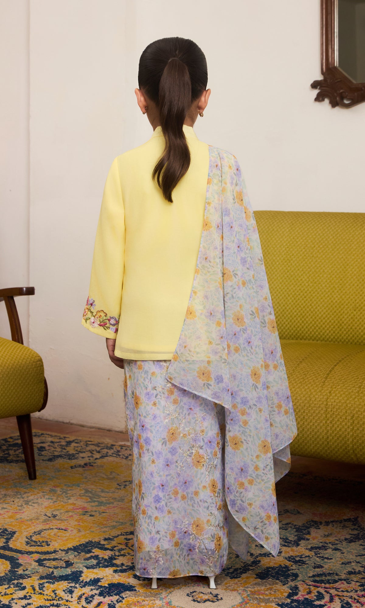 - Embroidery details on the kurung and sleeve