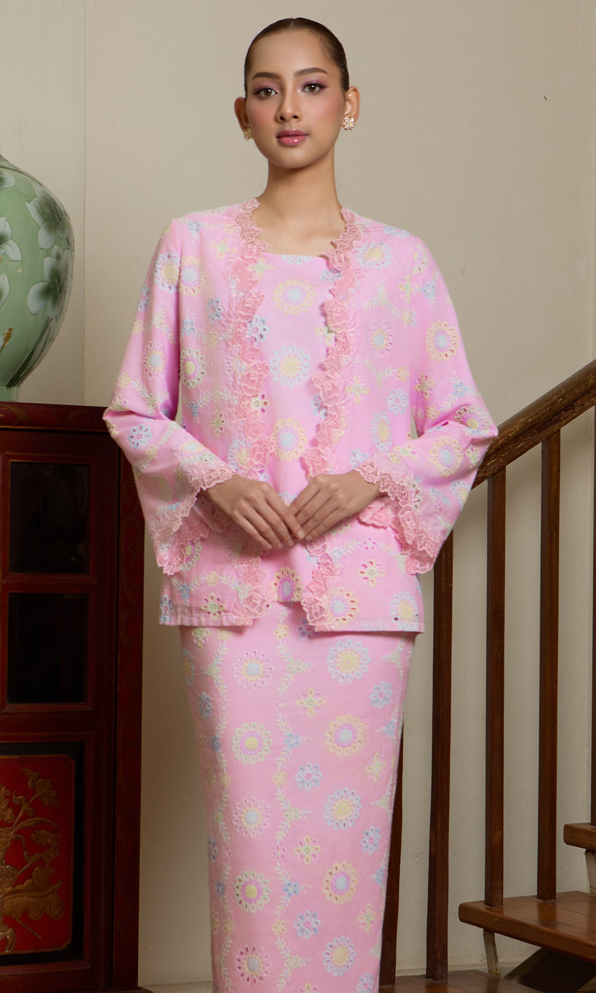 - Custom embroidered lace on kurung top and at the end of the sleeve