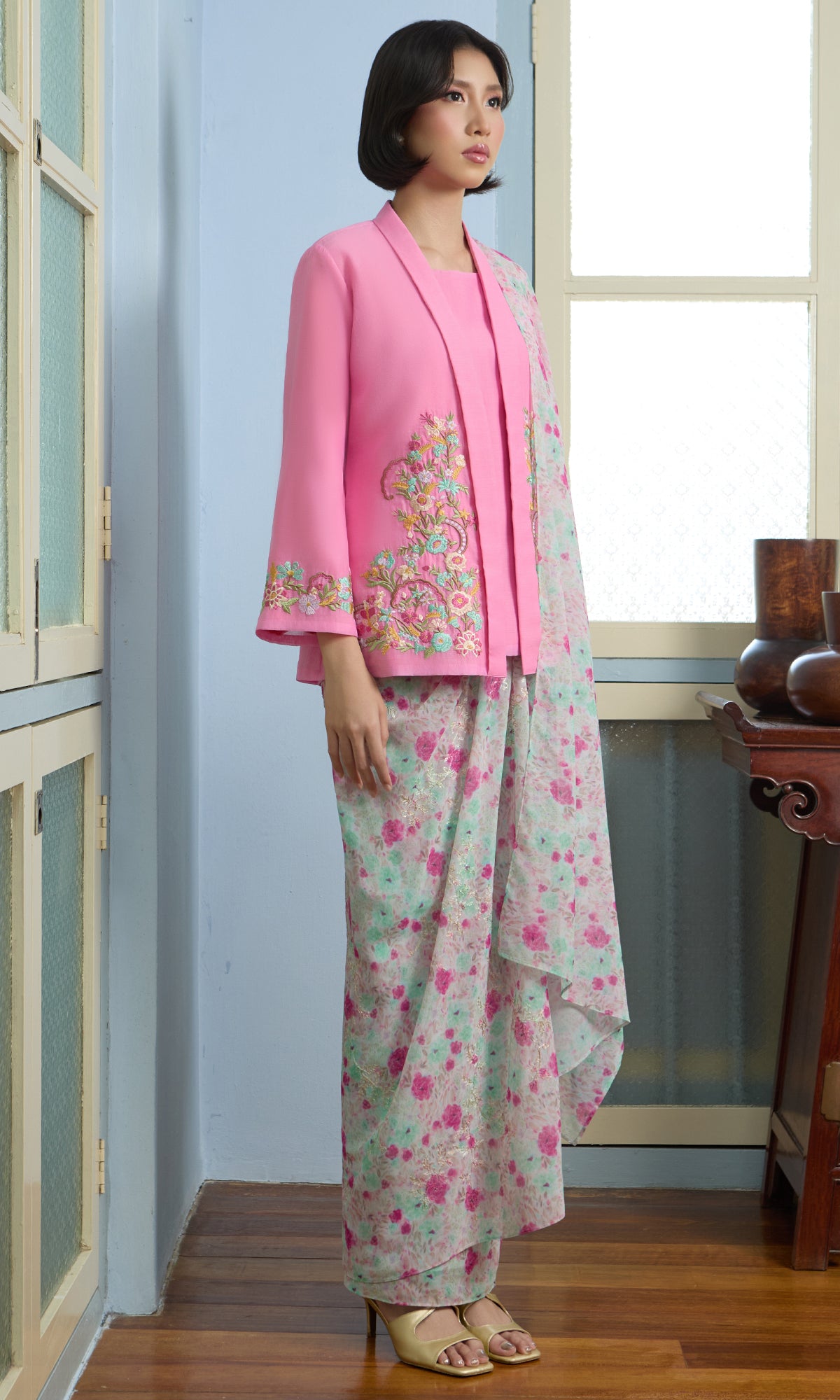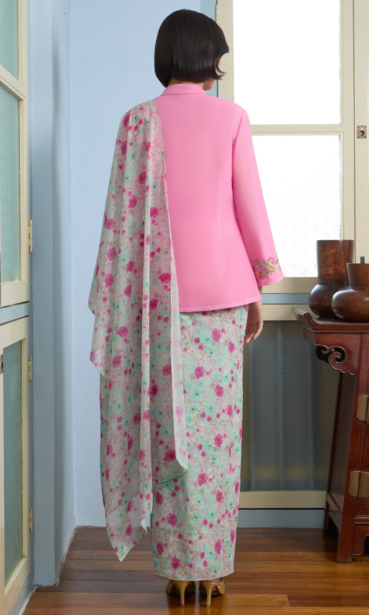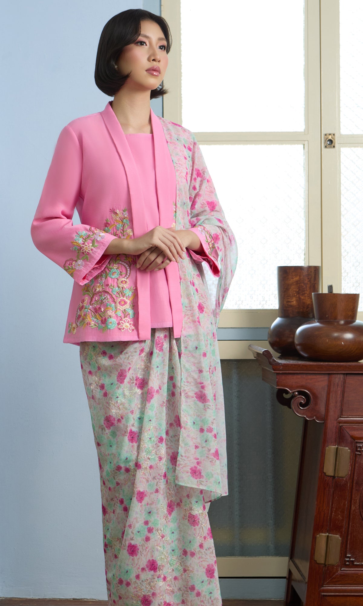 - Embroidery details on the kurung and sleeve