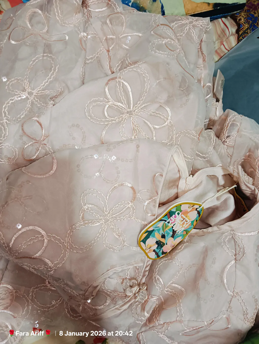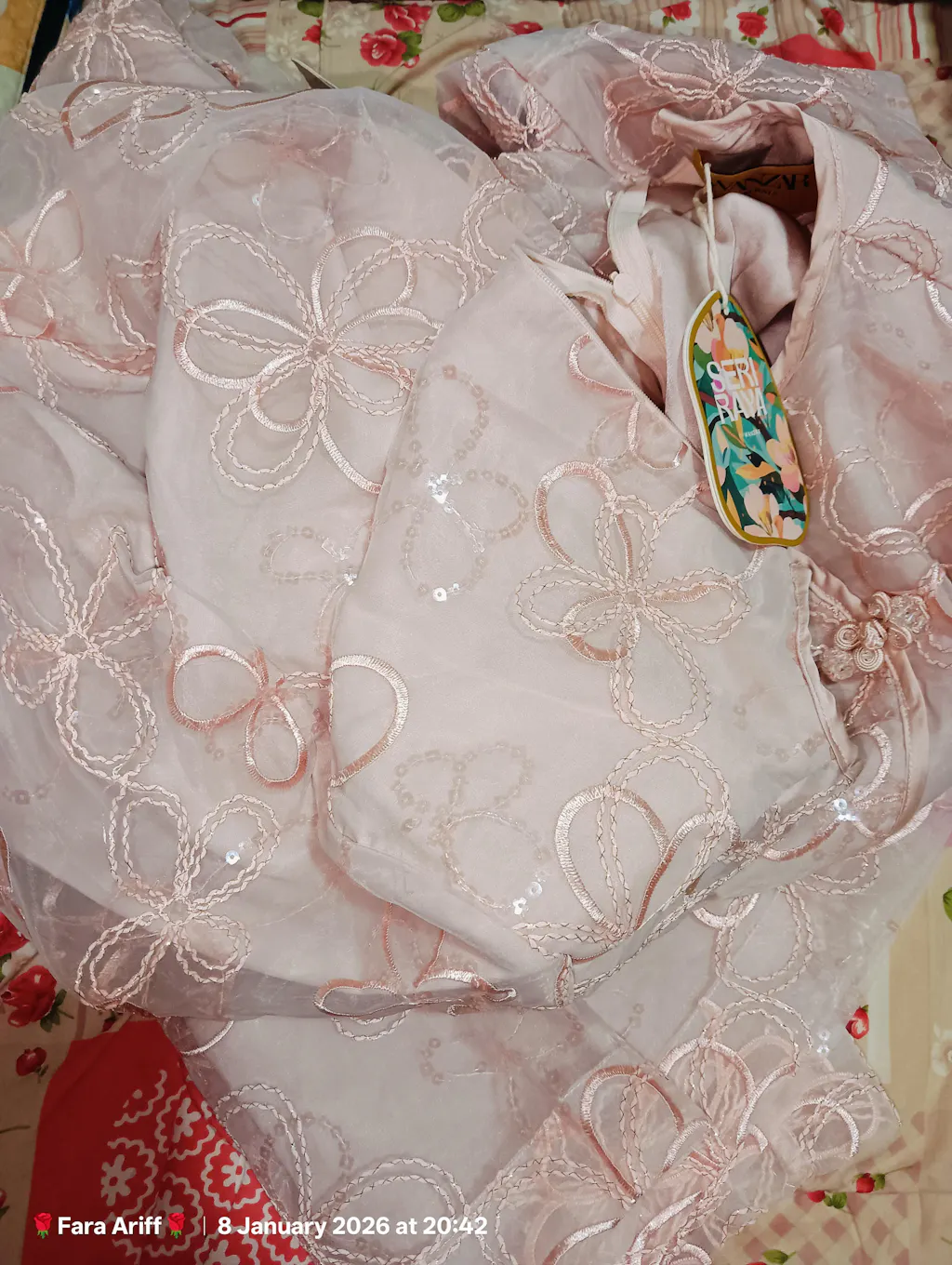 - Material: Soft Organdy with Floral Applique