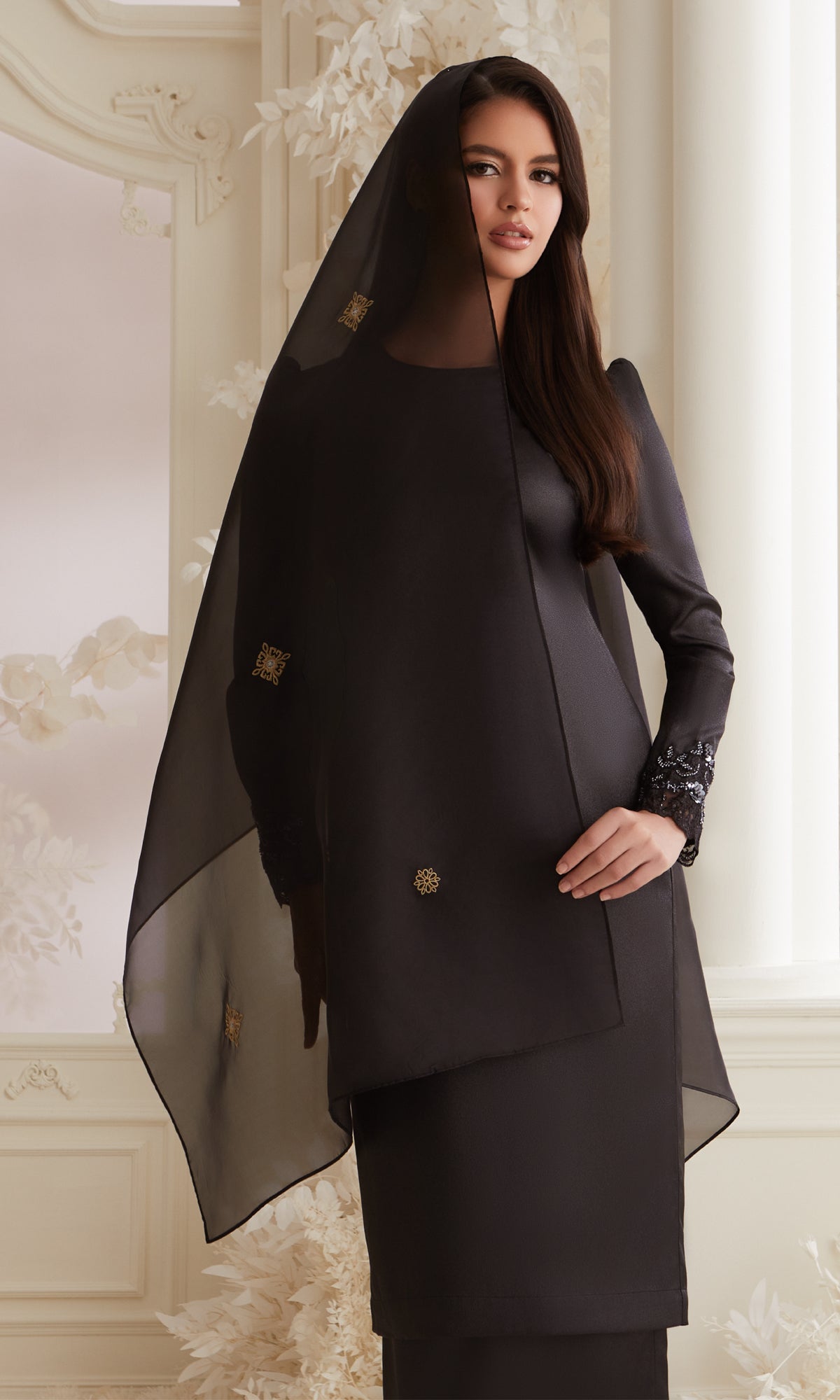 shawl with couture artistry. - Delicate finish each floral motif is finely stitched to reflect softness and