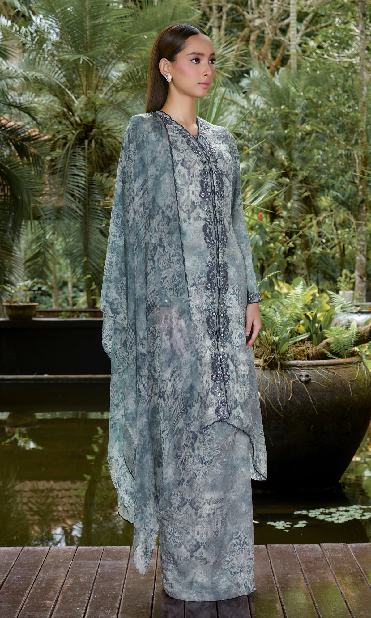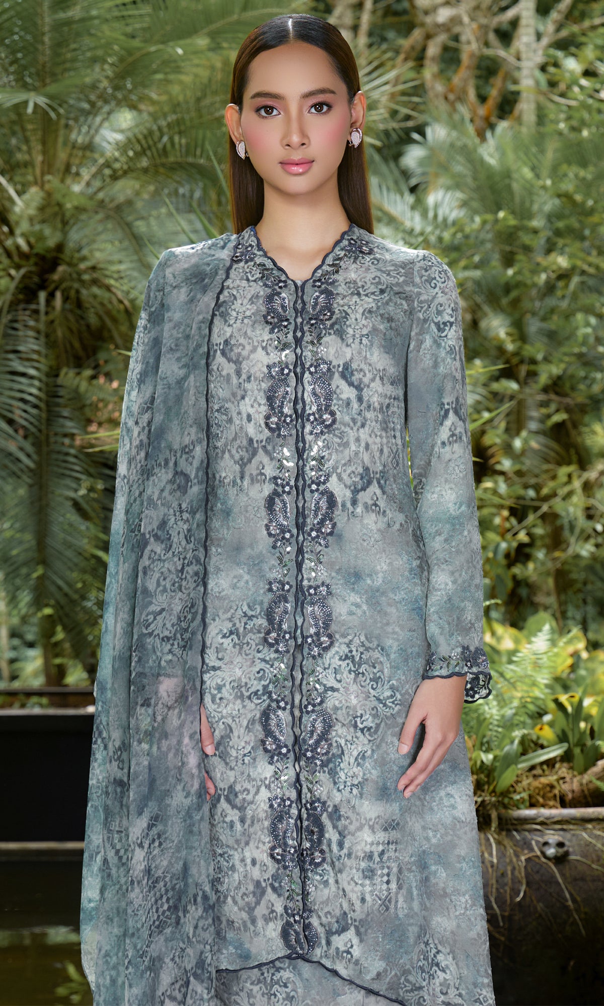 - Long sleeve with hand beaded detailing and floral motif embroidery