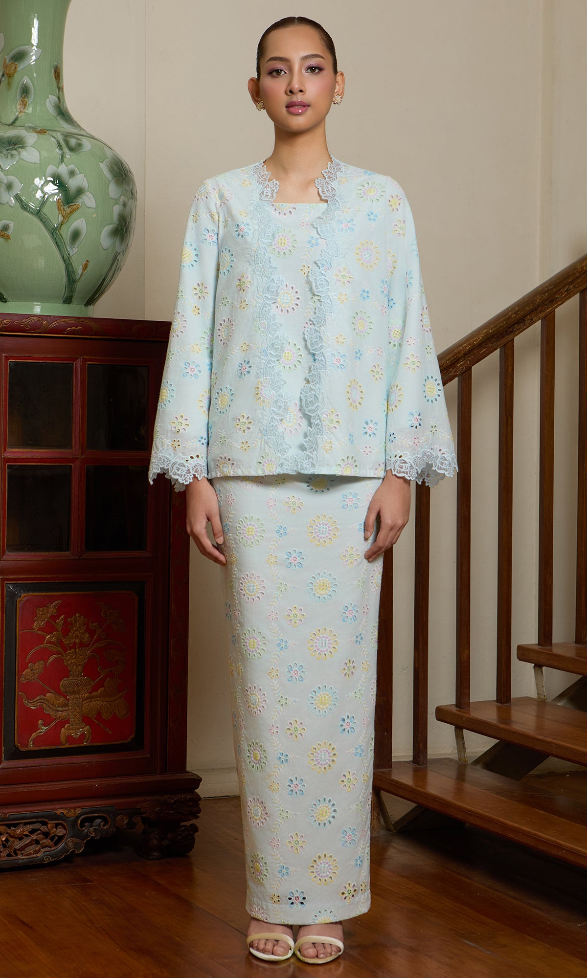 - Custom embroidered lace on kurung top and at the end of the sleeve